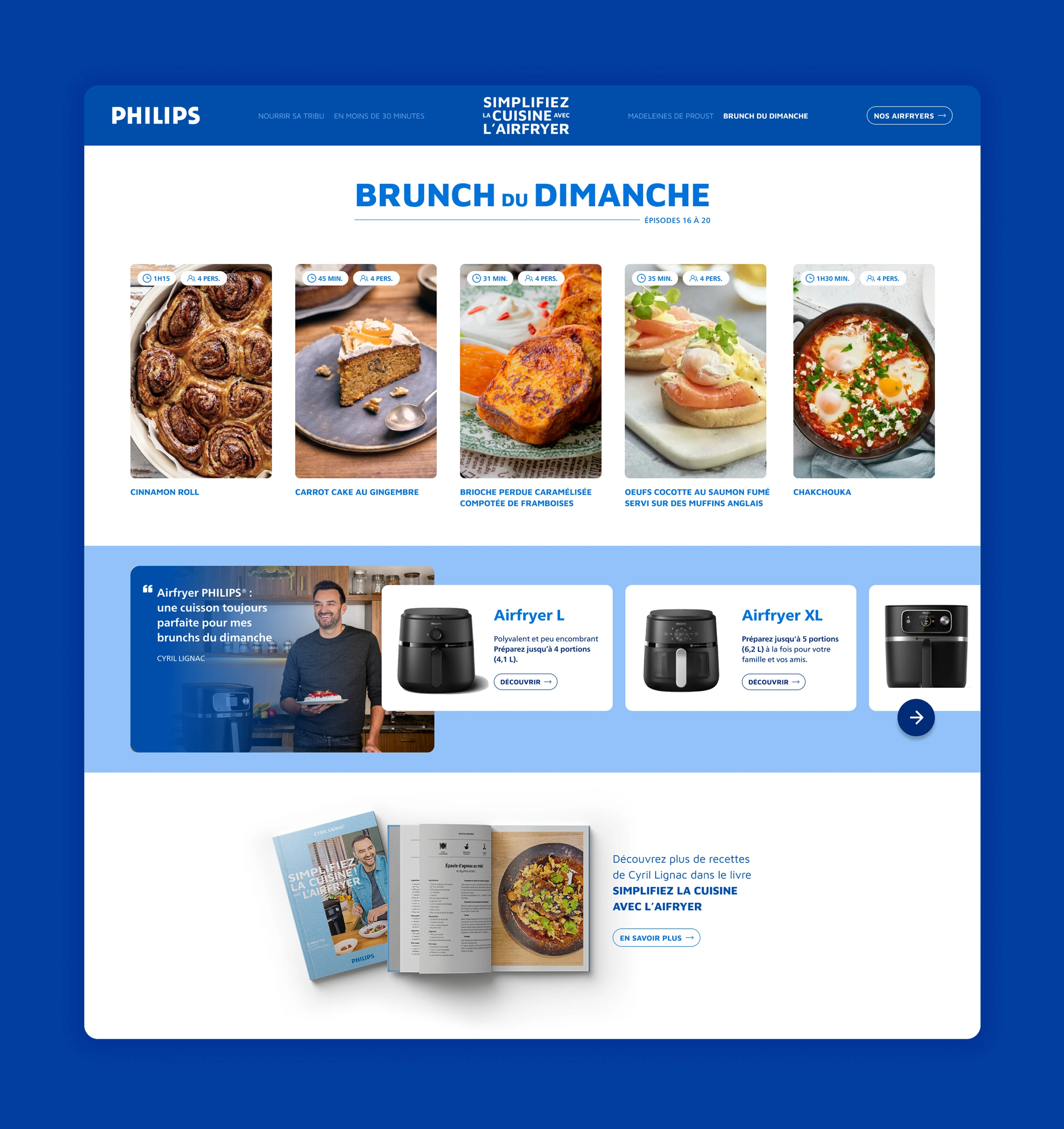 PHILIPS souhaitait renouveler son partenariat avec Cyril Lignac pour la deuxième édition d'une opération digitale mettant en valeur les avantages de l'Airfryer. L'objectif était de créer un univers inspirant autour de 20 recettes inédites, alliant innovation culinaire et technologie.